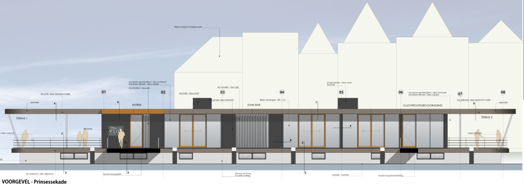 De nieuwe horecaboot zal wederom een glazen boot worden met meerdere terrassen waar de gasten, bezoekers en omwonenden doorheen kunnen kijken zoals nu ook het geval is. De huidige terrassen worden in de nieuwe boot geïntegreerd. Verder gaan we met de nieuwe horecaboot van het gas af en zal er een groen geïsoleerd dak komen met zonnepalen erop. De boot zal gebouwd worden van hedendaagse duurzame bouwmaterialen. Uiteraard wordt er circulair gebouwd.